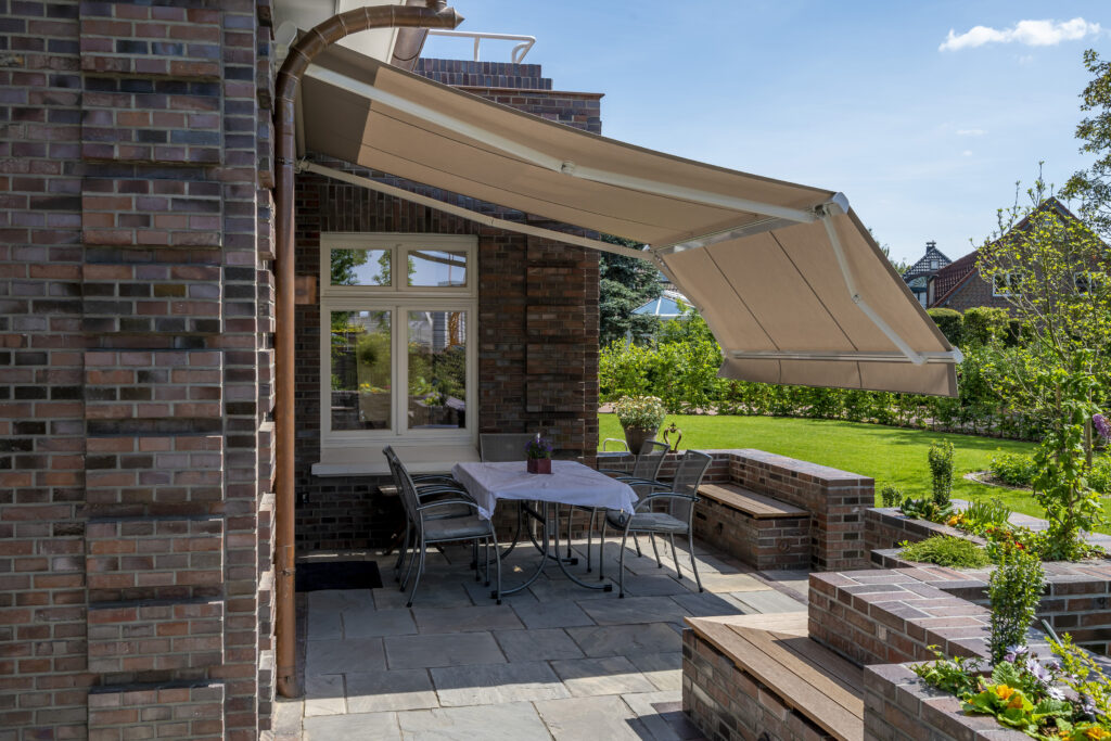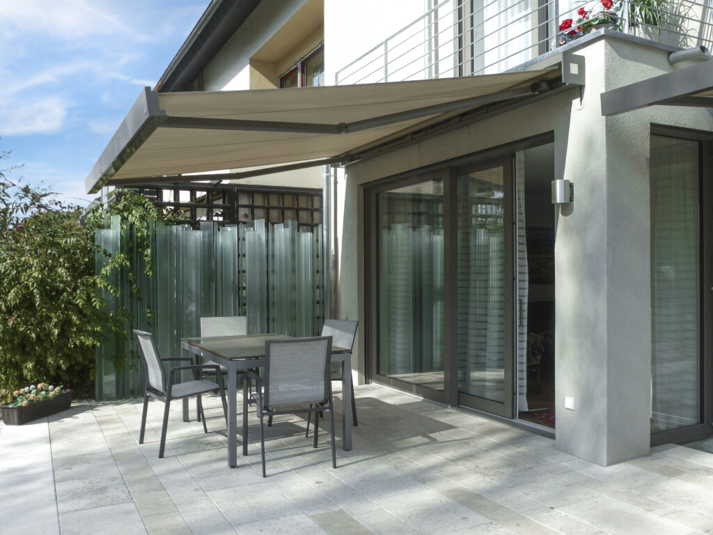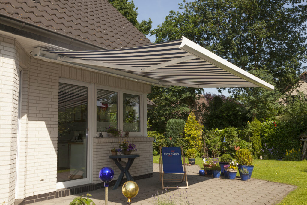 Unsere Terrassenmarkisen von Nova Hüppe sorgen für Wohlbefinden bei starker Sonne sowie leichten Wind und Wetter. Für tiefstehende Sonne am Abend sind Modelle mit Volantrollo erhältlich und auch Beleuchtung erhältlich.