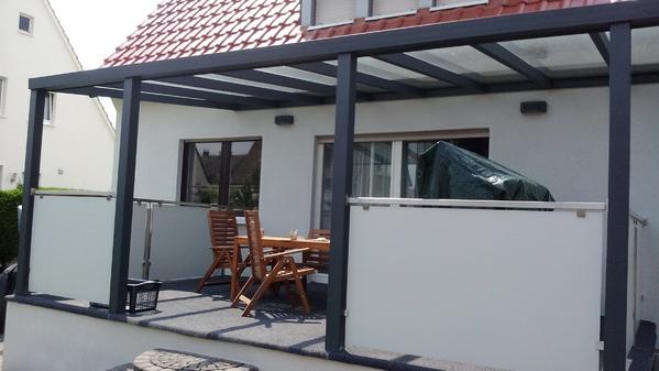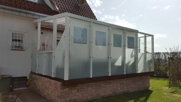 Sichtschutzwand aus Milchglas mit Klemmhaltern