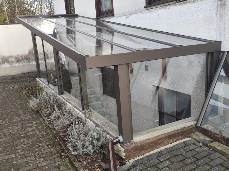 Ob für unsere gewerblichen oder privaten Kunden aus dem Raum Bielefeld, der gesamten Region Ostwestfalen-Lippe oder der Umgebung, formschöne und funktionale Vordächer aus Aluminium und Glas werten Ihren Eingangsbereich deutlich auf. Sie bieten Schutz vor Sonne und Wasser an der Haustür oder dem Kellereingang. Eine Ergänzung durch Seitenteile oder individuelle Anpassung ist natürlich möglich.